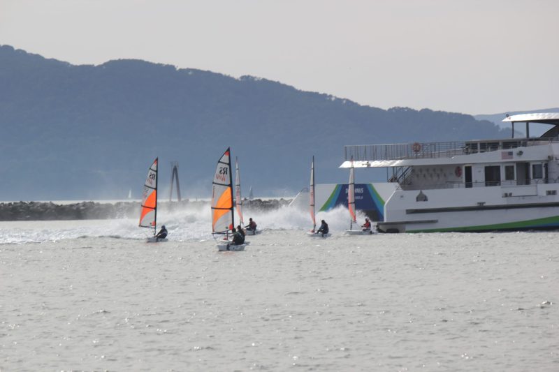 Eighteen boats have raced in the RS Tera class at various points so far, though not all of the boats have sailed every day of racing. Six boats have raced in the Feva class throughout the series. With one day of racing left in the series, RYC’s Tucker Cook is leading the Feva class, having finished in the top three in each of the eight races sailed so far. Cook has won four of the eight races, including the second race sailed this past Sunday.
