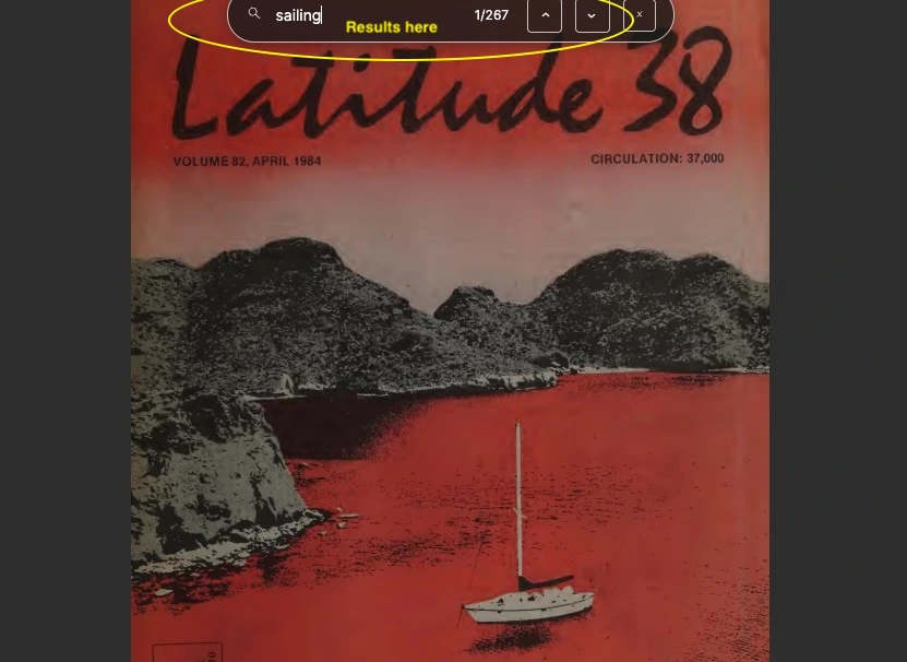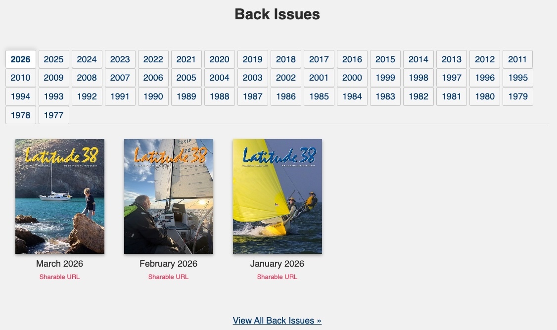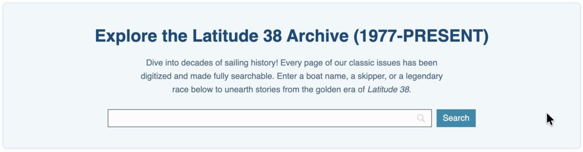 Presumably you already know the page you’re on, ‘Lectronic Latitude. Of course there’s the home page: https://www.latitude38.com/, and the page dedicated to the monthly magazine: https://www.latitude38.com/magazine/. But how about all the other cool features available? Let’s start with the magazine — we don’t have only the current month’s issue available; you can search for any topic, person, boat or event from today, right back to 1977. Here’s how: