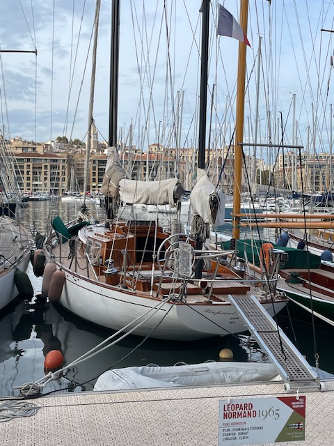 “A few days later in Marseille I found the Pôle Voiliers de Tradition. This is a collection of about 20 traditional yachts docked in a row adjacent to the Société Nautique de Marseille. Among the beautiful yachts that caught my eye was the Bermudan yawl Leopard Normand, a Sparkman & Stephens design from 1965.