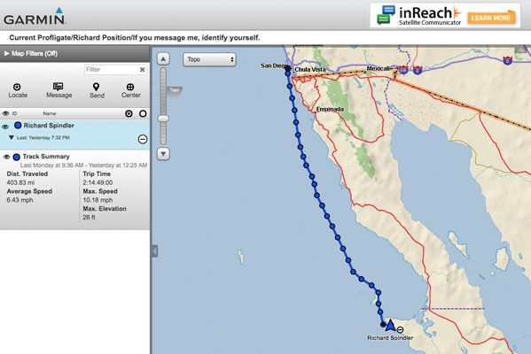 Everyone likes a nice breeze for a sail, but when you’re cruising, it’s just not as critical. The Grand Poobah checked in from just off Cedros Island on Wednesday to report this was the slowest first leg of the Baja Ha-Ha in memory (out of some 24 Ha-Ha’s). The leg also included minor rain and drizzle, strengthening the vision of a sunny destination. The track from the Garmin InReach showed an average speed of only 6.42 knots for the 400-mile leg to Turtle Bay, which is slow for the 63-ft cat Profligate.