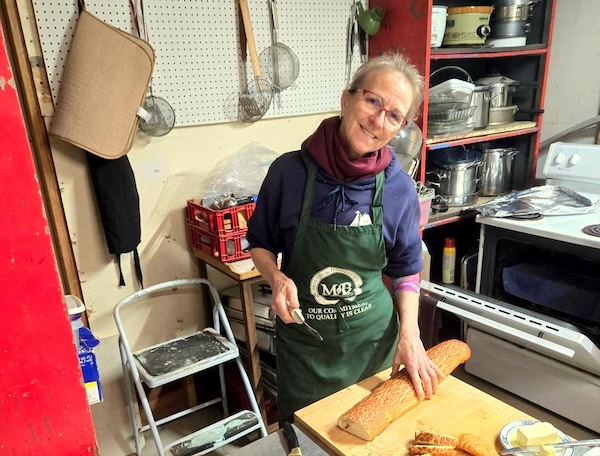 Last but certainly not least is a photo of Sylvia Stewart Stompe serving her legendary Wednesday Volunteer Lunch. Sometimes I think volunteers show up just for Sylvia’s cooking (I know I do). I bring the cookies.
