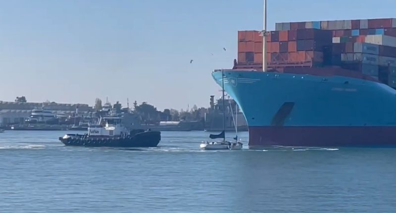 Two sailboats were on a collision course with a container ship last Thursday, with two tugs adding to the tussle.