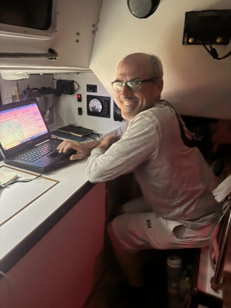 “I’ve got a son who lives in Colorado, and he said he’d come out and sail to Hawaii with us, so that was enough of an inspiration for us to put it together and say, ‘Let’s do it again,'” Jesberg tells us. “Last time we sailed to Hawaii, Sean Mulvihill joined us, and originally his son Jeff was supposed to join us also but he had a work commitment right in the middle of the Pac Cup so he couldn’t go, but this time he’s available! It’s a dual father-and-son boat, plus John Bonds. It’ll be a fun, nice sail to Hawaii, and hopefully we’ll do it in 11 to 12 days. It’ll be the 10th time that I’ve sailed to Hawaii. This will be the second time with my son.”