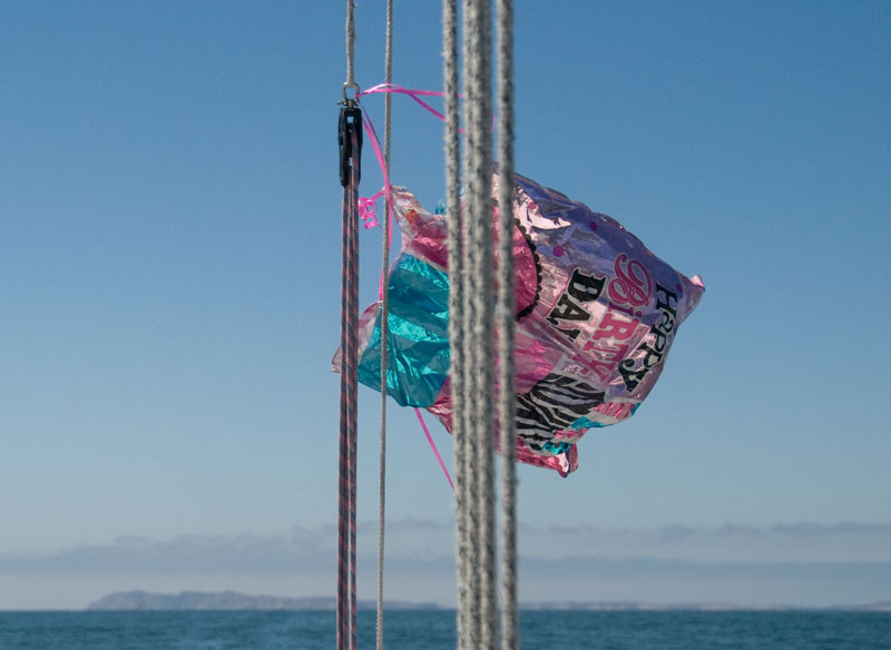 Out of place on the ocean were a couple of Mylar balloons floating on the surface, their helium no longer keeping them aloft.