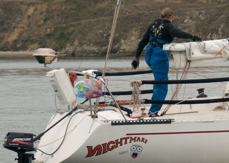 The seas were mostly flat, even glassy at times, and, although the overcast never cleared on Saturday, the sun came out for the sail back to Tiburon, and it was actually pretty warm out on the ocean. Despite the minimal swell, a bit of a rolling action — a motion not felt on San Francisco Bay or in the Delta — challenged sailors to keep their balance once they’d set the anchor.