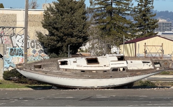 First up, last Friday we received the following photo from Latitude 38 delivery driver and sailor Bob Bodnar, who snapped a shot of the latest boat to join the growing fleet of wrecks along the Oakland shoreline. It doesn’t take being hit by a container ship for boats to meet their fate on the calm waters of the Estuary.