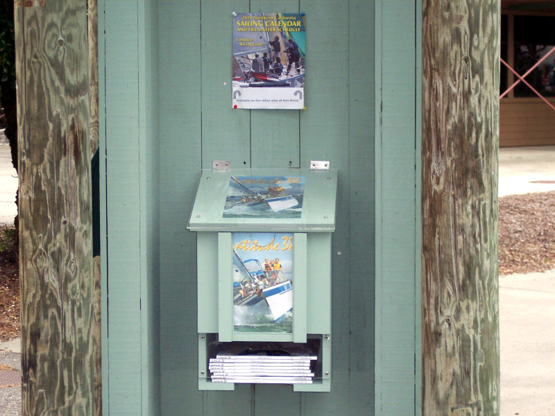And if you’re near the Berkeley Marina, you can now pick up your copy of the magazine at a convenient kiosk — and don’t forget the 2010 Northern California Sailing Calendar, which can be found on the other side. We should also remind you that, as always, the entire magazine can be downloaded from our site for free. (Due to some in-house technical difficulties, however, it may not be available until Wednesday.)