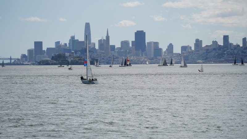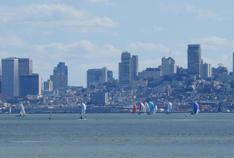 Sunday featured a pursuit-style race around the Bay, a format that spreads the fleet out and turns the day into a long tactical chase. Patience proved essential on the opening leg as boats worked a light-air reach against the flood toward Blackaller. Crews faced a classic Bay decision: Stay left and beeline for the Cityfront in search of pressure, or head right toward Yellow Bluff hoping to find relief from the current along the shore.