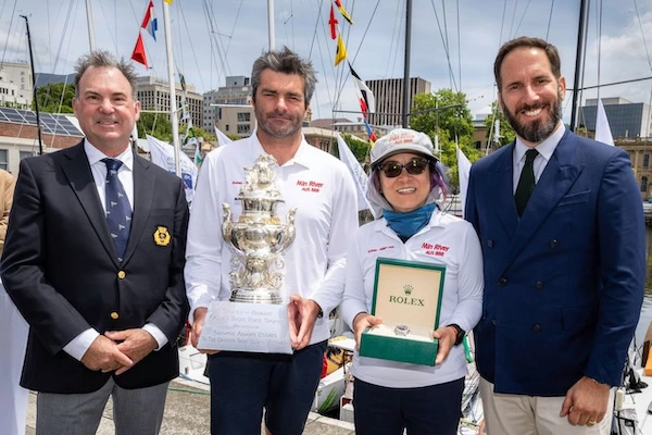 The doublehanded team of skipper/owner Jiang Lin and co-skipper Alexis Loison aboard the JPK 10.30 Min River (NSW, Australia) have been crowned the 2025 Rolex Sydney Hobart Race overall winners. Min River crossed the finish line in 41st place on December 30 with a time of 03:23:38:26. Jiang Lin is the first female skipper, and Lin and Loisin the first doublehanded crew, to win the 628-mile race, with a corrected time of 04:01:56:09.