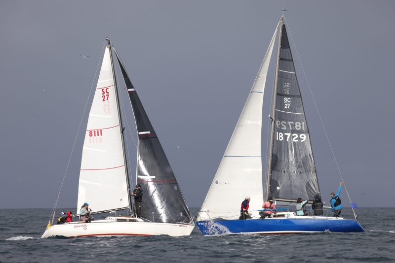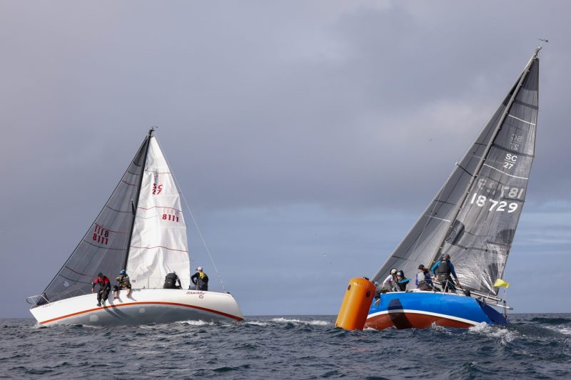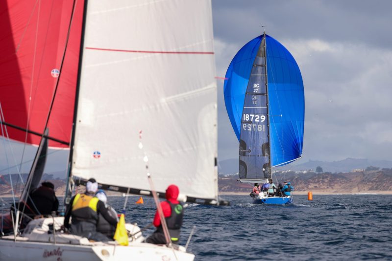 In the middle of a multi-day atmospheric river, the racing gods looked favorably upon the regatta on race day, with partly cloudy skies and winds varying from 5 to 15 knots out of the southwest. US Sailing umpire Rob Overton was officiating on the water, and MPYC past commodore Jerry Stratton was the principal race officer. MPYC members handled the marks, and a mix of MPYC and SCYC members were on the race committee boat overseeing the starts and finishes.