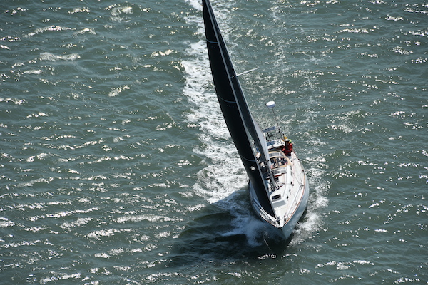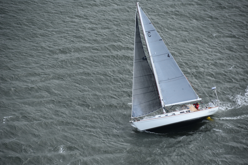 anywhere between a broad reach and a beam reach at the finish line itself. And lot of squally conditions were occurring right there. So my plan was to take that spinnaker down, but without an auto helm, I’m not going forward. So there was a lot planning going on there with that. And fortunately, I use a spinnaker snuffer. So it’s a spinnaker sock. I had let it, before this race, I had let it back aft to the cockpit. So I was able to snuff it.