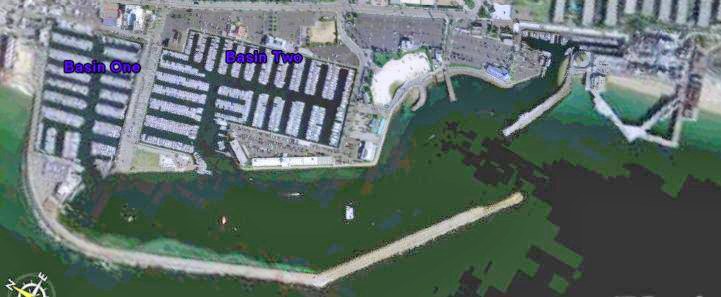 King Harbor as seen from the air. The Ta-Ta fleet has permission to anchor up to 50 boats inside the outer breakwater. It may be possible to get a berth at one of the local marinas. The King Harbor YC is at the extreme left, and had graciously offered dinghy raft-up space and will be offering a dinner and beverages at their outdoor patio. © Webb LoggSo what are the berthing options? We on Profligate will be anchoring out — it’s calm behind the breakwater, but local regulations require a stern anchor, too. And to keep things compact, we expect to be the center boat in a fairly large raft-up. Participants can also see if there are any berths open at the following King Harbor/Redondo Beach marinas: King Harbor Marina (310) 376-6926, Port Royal Marina (310) 376-0431, Portofino Marina (310) 372-1202 or Redondo Beach Marina (310) 374-3481. But please, do not call the great folks at the yacht club and ask for a berthing reservation.
