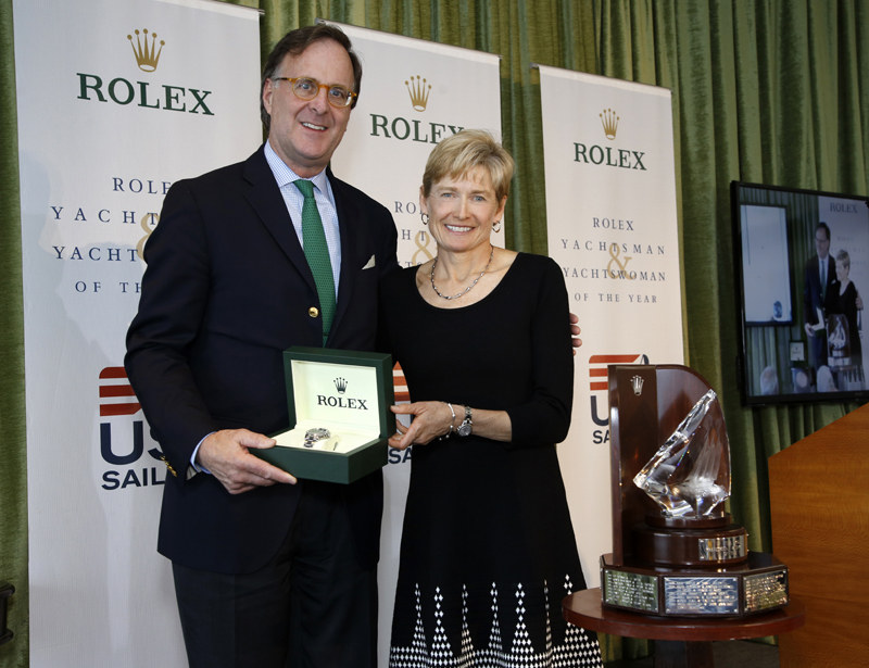Brian Porter and Jody Starck formally accepted their respective 2013 Rolex Yachtsman and Yachtswoman of the Year awards yesterday at the St. Francis Yacht Club. The event, emceed by Gary Jobson, highlighted the careers of two of America’s finest sailors. With family, friends and a room full of sailing notables the awardees gave heartfelt accounts of how they’ve succeeded in sailboat racing and expressed their true appreciation of the sport that enjoy so much.