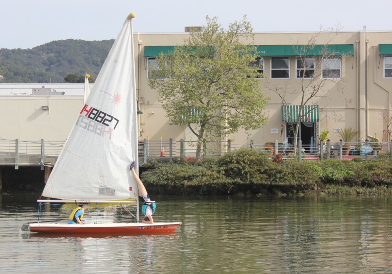 The class is also staffed by a few volunteers. San Rafael alumnus and sailor Cameron Tuttle said he stumbled across the program, unaware that it even existed. He’s been volunteering for three seasons, and on the day we visited, was in a Laser leading the flotilla up the Canal. “We’re always kind of adapting,” Tuttle said. “During the fall semester, we stay in the turning basin [between Montecito Plaza, Terrapin Landing and SRYC] and set up some marks. During the second semester, we try to take them out and cruise down the Canal as a group.”