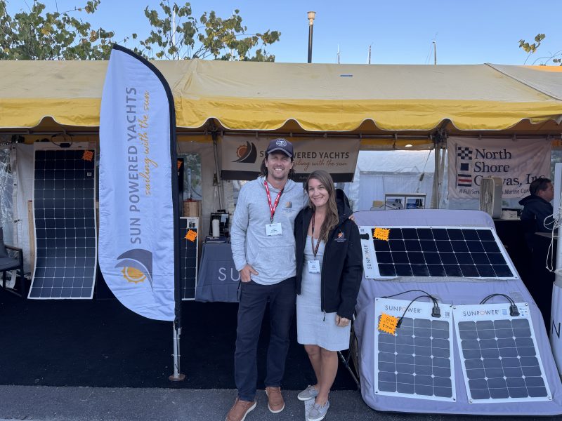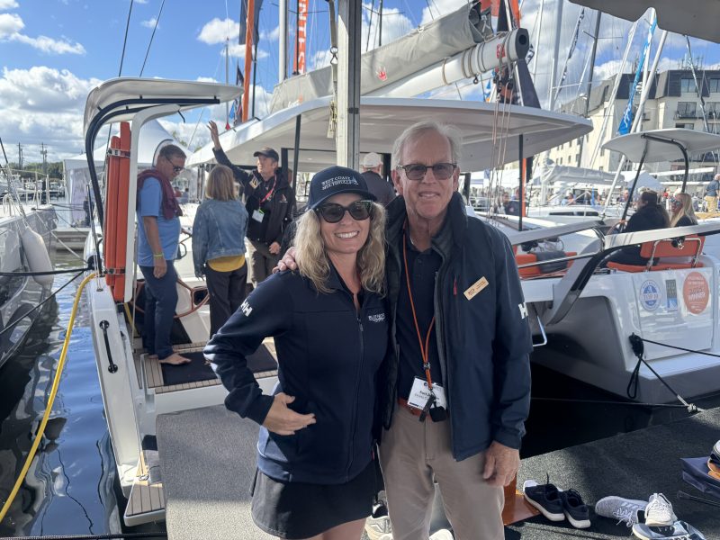 We ran into Kurt Jerman and Guinevere King from West Coast Multihulls, who sold an Excess 14 at the show. The teams from Cruisers Academy and Sun Powered Yachts were nearby, and our friends at Hydrovane were so busy we barely managed a quick hello.