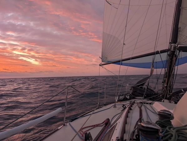 Generally, it takes a world war or COVID pandemic to prevent sailors from completing this course. This year, nearly one-third of the 128-boat fleet ended up heading for safe harbor due to high winds and brutal seas. The race committee takes its job seriously. The safety requirements would sink a Cal 20. Each vessel must complete inspections by three different inspectors while hauled at a yard. The hull keel joint is examined, the rudder and bearings are surveyed, and many more critical measurements are confirmed to ensure stability. Each competitor is required to have a PLB and EPIRB in addition to a life jacket and harness no more than a year old, with sales receipt to prove it.