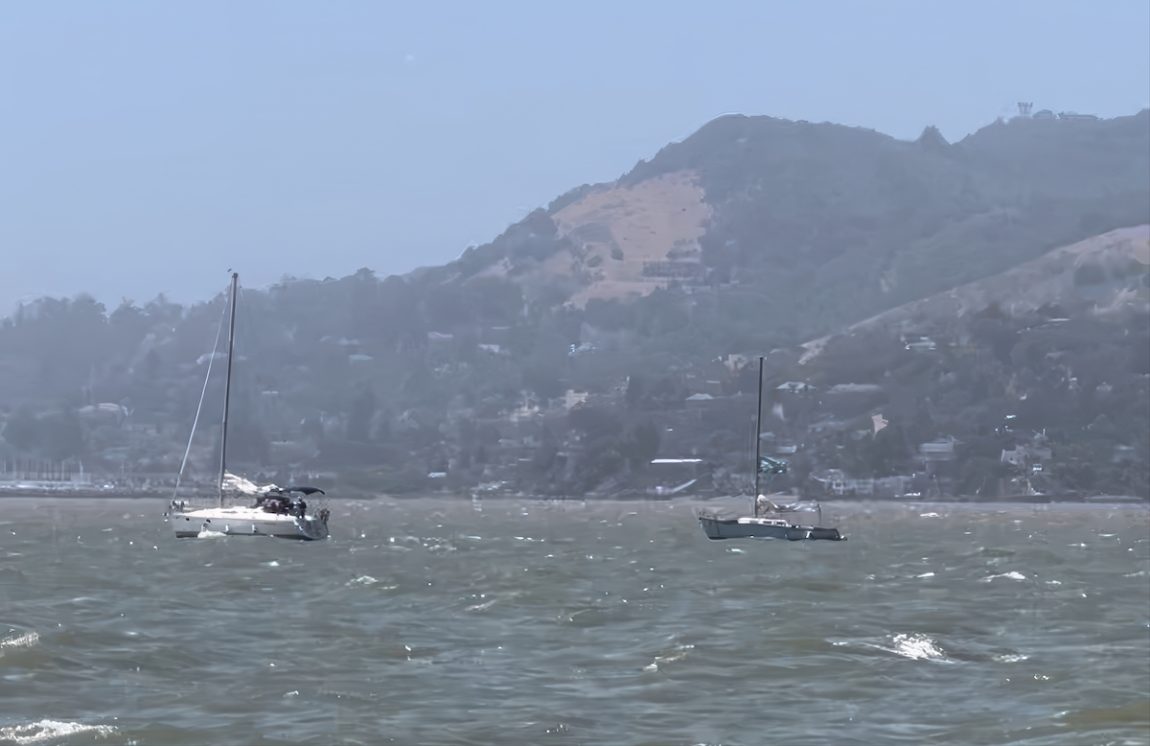 I noted unusual whitecap activity that appeared to grow more powerful as I sailed under the Richmond-San Rafael Bridge two hours later. The challenge now at hand would be a trip to the mast to bring down the final section of mainsail by hand. The heavier gusts, swells and chop demanded a stronger grip and calculated footing at the mast. The time of the first “mayday” call, 1:40 p.m., found me circling at the entrance to the channel leading to my marina while the flood current slowly crept in. The distressed-vessel captain described more detail to the Coast Guard.