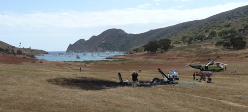 The high season at Catalina got off to a terrible and tragic start on Saturday morning when a Eurocopter AS-350 carrying four mariners, plus a pilot and baggage handler, from Long Beach to Two Harbors crashed in a sloped field about 75 yards south of the Isthmus Yacht Club.