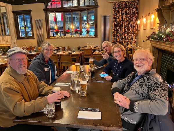 Our time at SKD celebrated the strong sense of community and camaraderie formed among sailors. During our time the guest berths were filled with over two dozen international visitors spending the winter in London. Now, there are about a half-dozen cruisers taking advantage of the lower winter-rate fees. We had a standing Tuesday morning breakfast together at one of the nearby restaurants to exchange information about everything — currently they meet on Monday mornings — discussing shows, activities, events, news and the most economical way to do everything. One of the best tips was the “day of” theater tickets in the West End. Rising early, you get in a queue in front of the theater you want to attend that night to buy the limited reduced-cost tickets. Fellow cruisers had tips to offer about everything, and we often ended up arranging excursions together and sharing meals at some of the nearby pubs: the Prospect of Whitby, Captain Kidd, and the Grapes (a longer walk near Limehouse Basin Marina, where canal boats are available for rental.) This last pub was owned by Sir Ian McKellen, who had his Oscar nonchalantly sitting on a shelf.