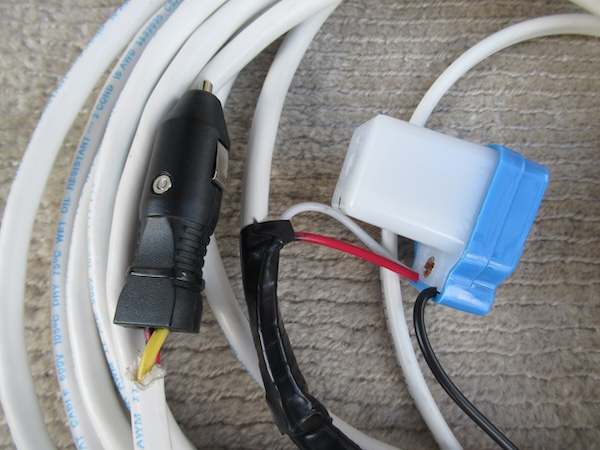 - I used a cigarette lighter adapter because I had already outfitted Sampaguita with an outlet. USB was an option, but I am not sure about the compatibility of a USB plug and a 16 AWG duplex cable.
