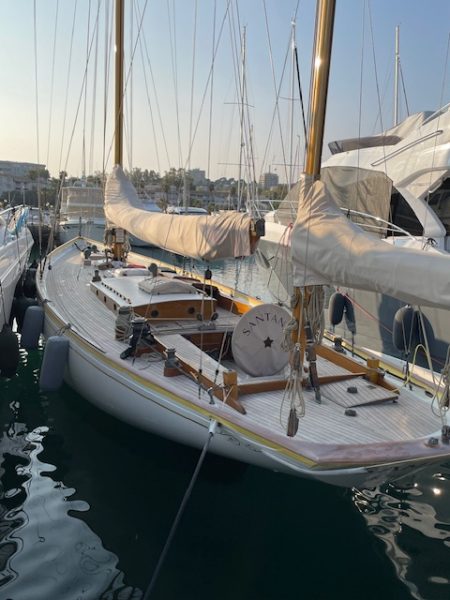 Reader Howard Clayman of SV ‘Ciao Mano’ discovered another West Coast classic in France, the historic yacht ‘Santana.’
